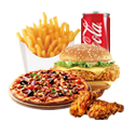 16" Pizza, 10" Garlic Bread, 4 Goujons, 4 Nuggets, 3 Reg Chips 1 Curry Dip, 1 Garlic Dip & 1.25Ltr Coke